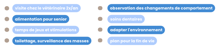 Retrouvez au cours de notre article, les principaux facteurs à changer ou à surveiller pour maintenir la santé et le bien être de votre chat dès 8 ans :